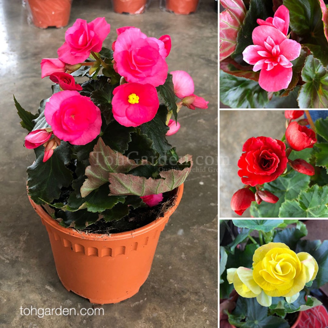 Rose Begonia. These begonia blooms are especially large and showy with bright colors beautiful perfume and soft ruffles. Versatile in sun or shade and more vigorous than older varieties.